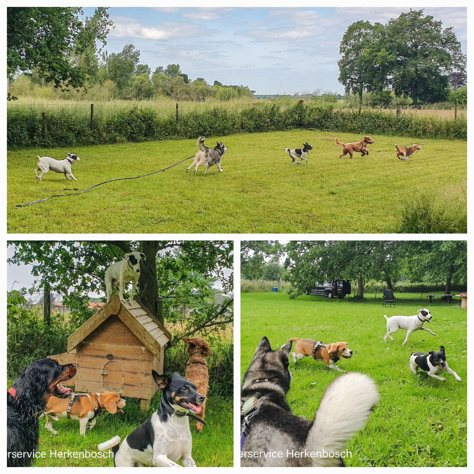 "Ontdek de speelweide van Huisdierservice Herkenbosch: een groene oase in het prachtige buitengebied. Terwijl uw hond heerlijk aan het rennen en spelen is, komt u zelf tot rust op een van onze vele zitjes. Dankzij de landelijke omgeving en de overvloed aan natuurlijke schaduw is het hier zelfs op warme zomerdagen heerlijk toeven. Geniet van de stilte terwijl uw viervoeter de tijd van zijn leven heeft!"