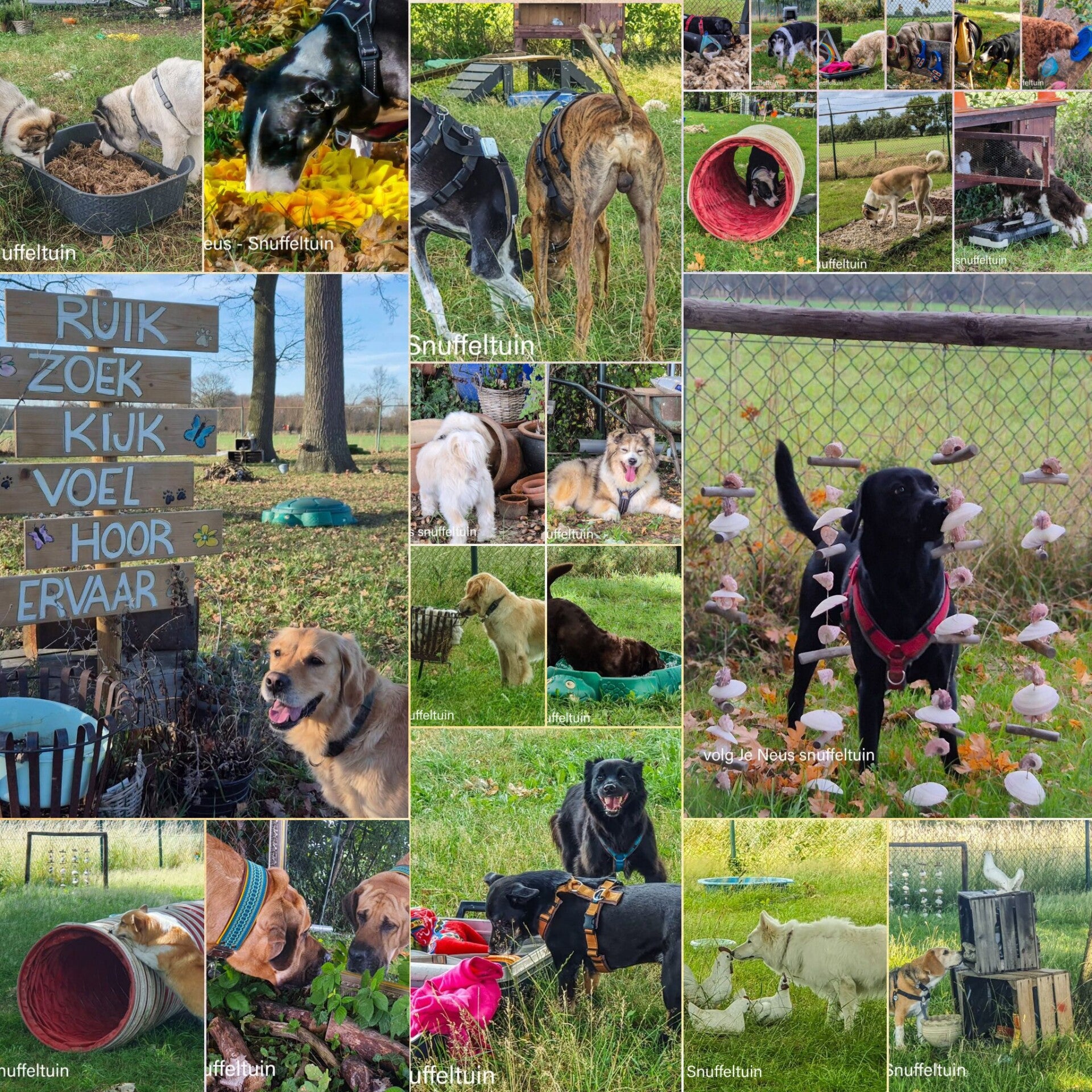 - Zintuiglijke prikkeling: Onze snuffeltuin is speciaal ingericht om de natuurlijke instincten van uw hond te stimuleren met verschillende geuren en texturen.
